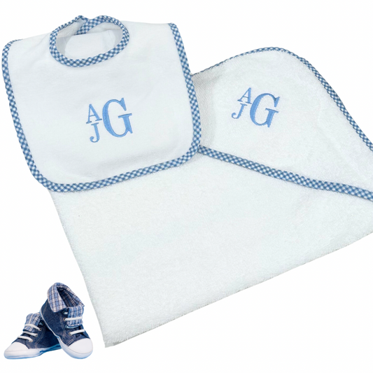 HOODED GINGHAM TOWEL & WASH CLOTH SET